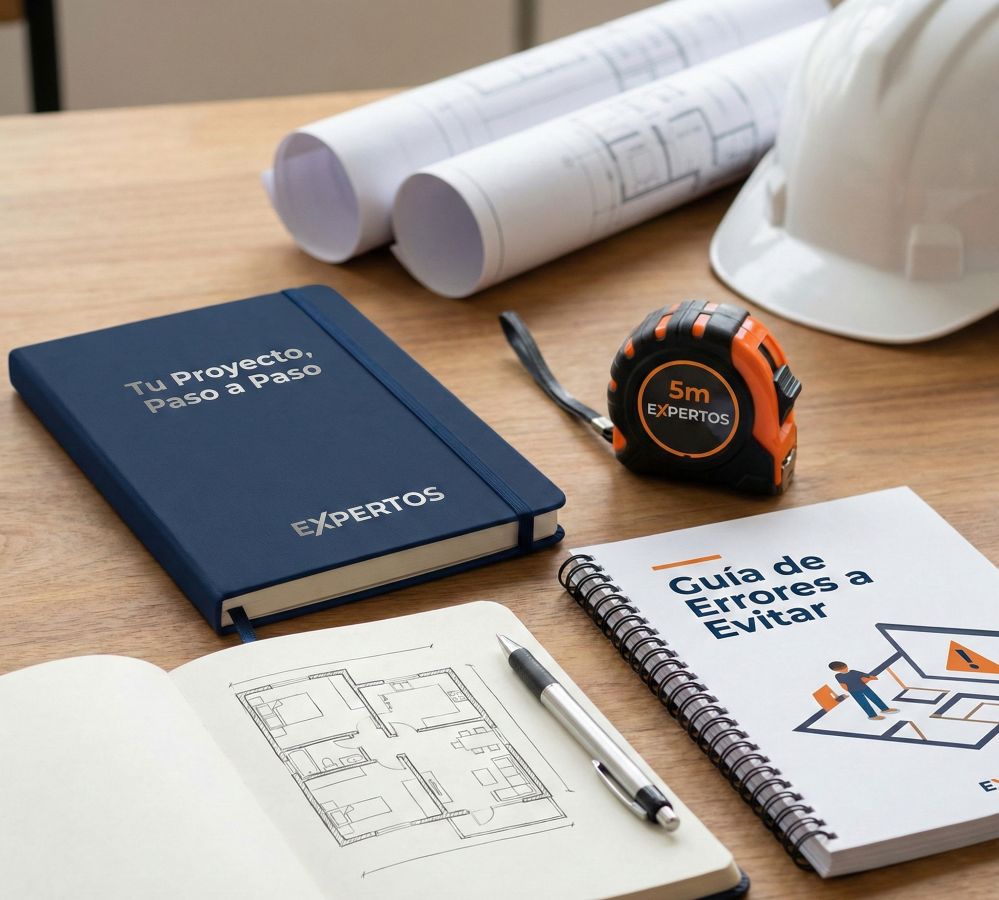 Toda gran obra comienza con un buen plan. Este kit ha sido diseñado para que los propietarios tomen el control de su proyecto desde el día uno. Incluye un cuaderno de tapa dura con secciones específicas para dibujar croquis, anotar medidas y listar necesidades; una cinta métrica robusta de 5 metros con la marca de la empresa; y, lo más valioso, una pequeña guía impresa redactada por nuestros expertos con los 10 errores más comunes (y costosos) que cometen los clientes al iniciar una reforma y cómo evitarlos. Es el compañero ideal para las primeras fases de inspiración y definición.